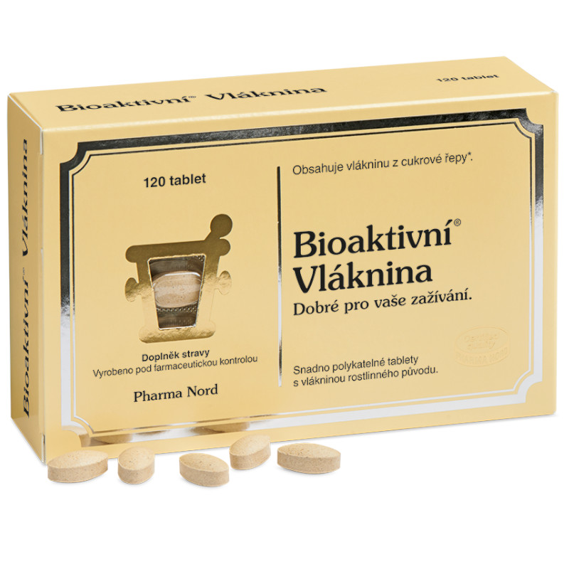 Bioaktivní Vláknina ve formě snadno polykatelných tablet s vlákninou z cukrové řepy. Zvětšuje objem stolice.