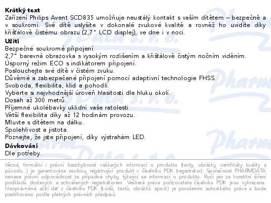 Zařízení Philips Avent SCD835 umožňuje neustálý kontakt s vaším dítětem – bezpečně a v soukromí. Své dítě uslyšíte v dokonalé zvukové kvalitě a rovněž ho uvidíte díky křišťálově čistému obrazu (2,7" LCD displej), ve dne i v noci.