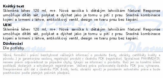 Skleněná láhev 120 ml, 0 m+. Nová savička k dětským lahvičkám Natural Response umožňuje dítěti sát, polykat a dýchat jako je tomu u pití z prsu. Snadná kombinace kojení a krmení z láhve, antikolikový ventil, design ve tvaru prsu bez kapání.