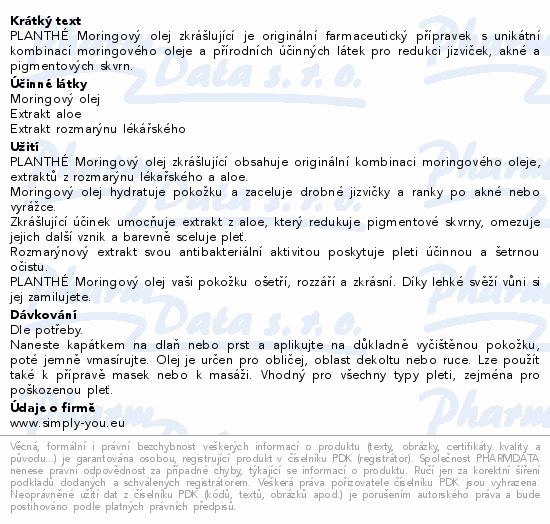 PLANTHÉ Moringový olej zkrášlující je originální farmaceutický přípravek s unikátní kombinací moringového oleje a přírodních účinných látek pro redukci jizviček, akné a pigmentových skvrn.