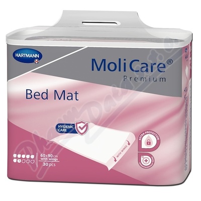 Jednorázové podložky MoliCare Bed Mat jsou tvořeny absorpčním jádrem z několika vrstev celulózy. Jsou opatřeny vnější nepropust. a protiskluzovou fólií. Celá plocha podložky je pokryta netkanou a po obvodu uzavřenou textilií s ražbou proti shrnutí jádra.
