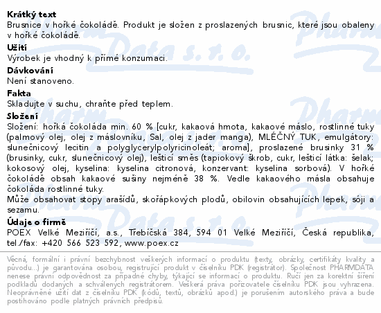 POEX Choco Exclusive Brusnice v hořké čoko.700g