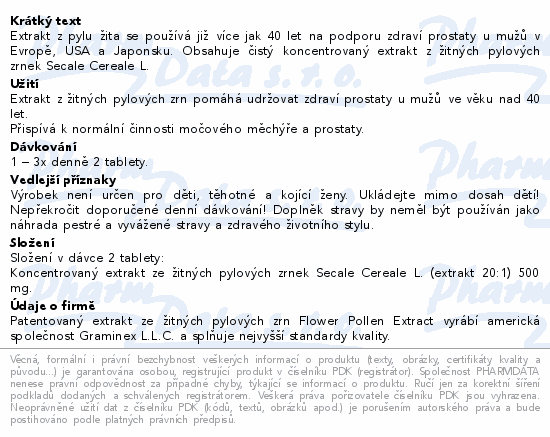 Extrakt z pylu žita se používá již více jak 40 let na podporu zdraví prostaty u mužů v Evropě, USA a Japonsku. Obsahuje čistý koncentrovaný extrakt z žitných pylových zrnek Secale Cereale L.