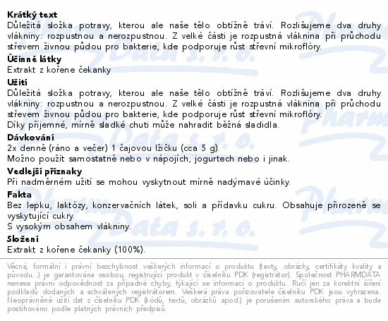 Důležitá složka potravy, kterou ale naše tělo obtížně tráví. Rozlišujeme dva druhy vlákniny: rozpustnou a nerozpustnou. Z velké části je rozpustná vláknina při průchodu střevem živnou půdou pro bakterie, kde podporuje růst střevní mikroflóry.