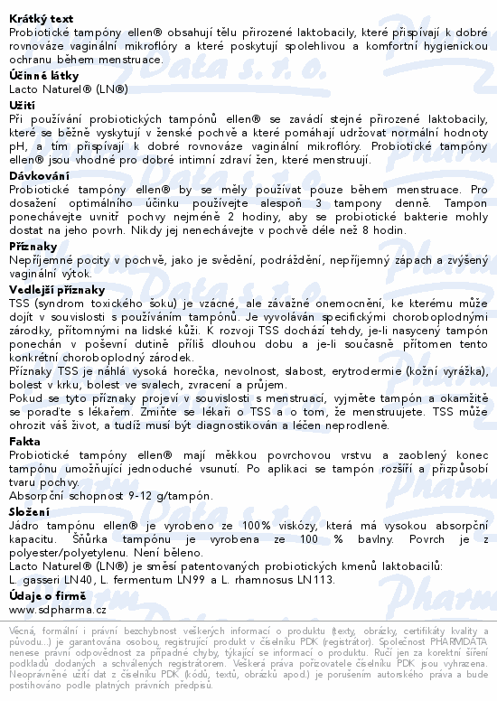 Probiotické tampóny ellen® obsahují tělu přirozené laktobacily, které přispívají k dobré rovnováze vaginální mikroflóry a které poskytují spolehlivou a komfortní hygienickou ochranu během menstruace.