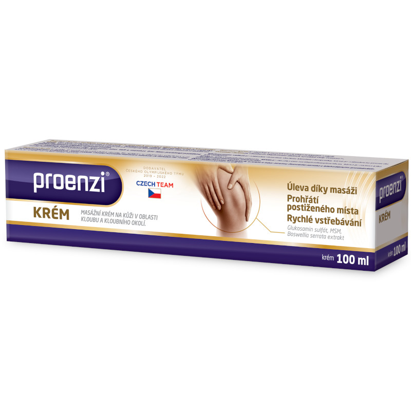 Proenzi® krém s rychlým vstřebáváním je určený k masáži kůže v oblasti kloubů a kloubního okolí. Obsahuje unikátní kombinaci tří látek – glukosamin sulfát, Boswellia serrata extrakt a MSM. Masáže jsou vhodné u stavů souvisejících s projevy kloubních obtíží a zároveň se podílí na snížení ztuhlosti a zlepšení hybnosti. Navíc obsahuje eukalyptový olej, jalovcovou silici, kafr a menthol. Tyto látky prohřívají postižené místo a přispívají k dosažení pocitu úlevy.