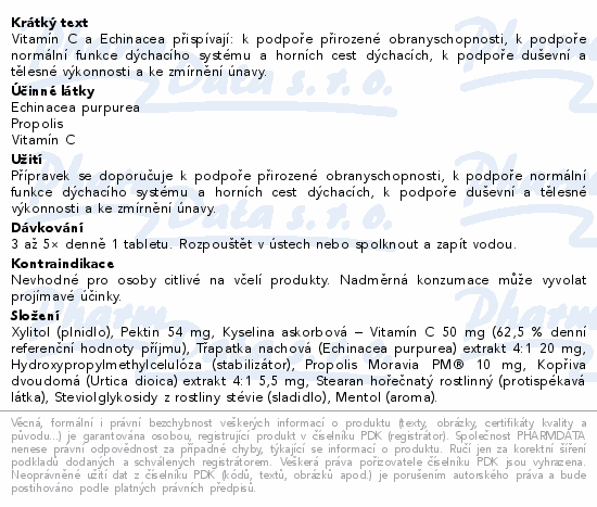 Vitamín C a Echinacea přispívají: k podpoře přirozené obranyschopnosti, k podpoře normální funkce dýchacího systému a horních cest dýchacích, k podpoře duševní a tělesné výkonnosti a ke zmírnění únavy.