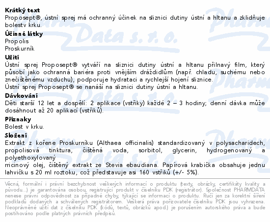 Proposept®, ústní sprej má ochranný účinek na sliznici dutiny ústní a hltanu a zklidňuje bolestv krku.