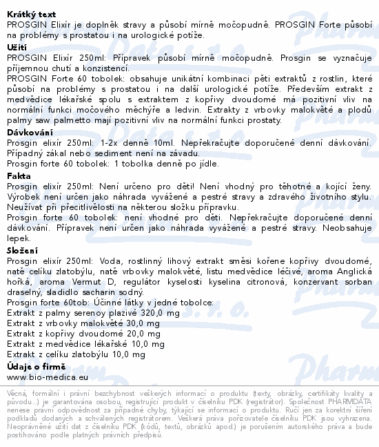PROSGIN Elixír je doplněk stravy a působí mírně močopudně. PROSGIN Forte působí na problémy s prostatou i na urologické potíže.