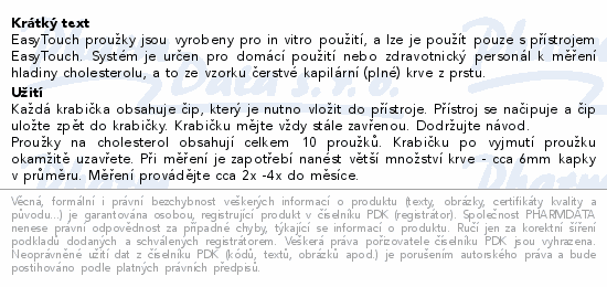 Proužky pro měření cholesterolu EasyTouch 10ks