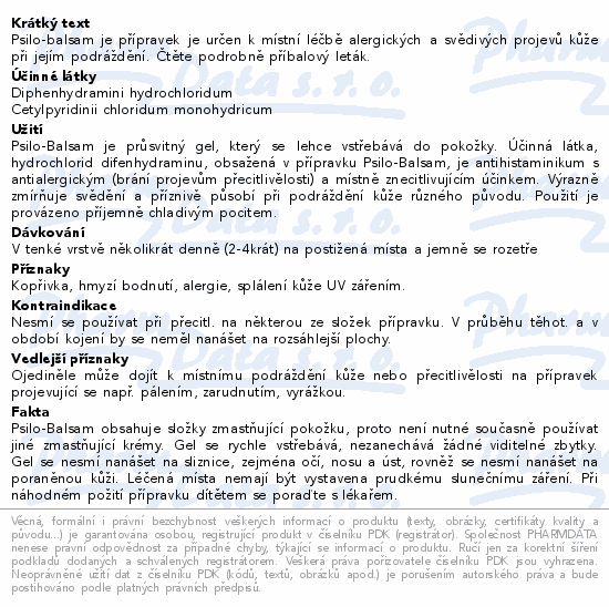 Psilo-balsam je přípravek je určen k místní léčbě alergických a svědivých projevů kůže při jejím podráždění. Čtěte pozorně příbalový leták.