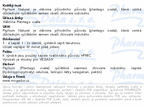 Psyllium Natural je vláknina přírodního původu (plantago ovata), která vzniká důkladným vyčištěním semen obalů Jitrocele indického.