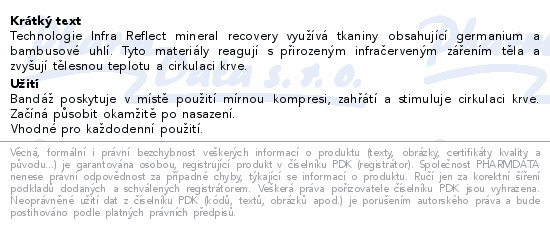 Technologie Infra Reflect mineral recovery využívá tkaniny obsahující germanium a bambusové uhlí. Tyto materiály reagují s přirozeným infračerveným zářením těla a zvyšují tělesnou teplotu a cirkulaci krve.