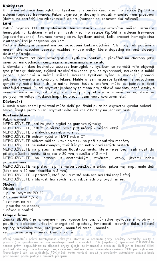 Pulzní oxymetr Beurer PO 30
