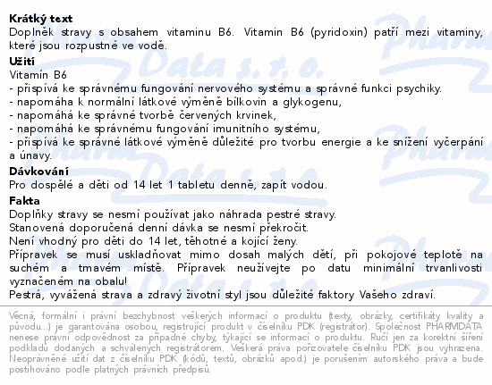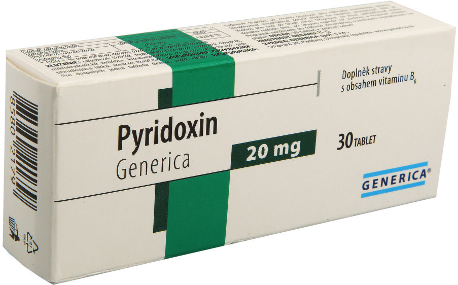 Doplněk stravy s obsahem vitaminu B6. Vitamin B6 (pyridoxin) patří mezi vitaminy, které jsou rozpustné ve vodě.