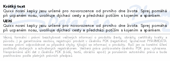 Quixx nosní kapky jsou určené pro novorozence od prvního dne života. Sprej pomáhá při ucpaném nosu, uvolňuje dýchací cesty a předchází potížím s kojením a spánkem.