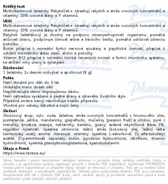 Oblíbené ovocné želatinky plné těch nejdůležitějších vitaminů pro vaše děti ve VÁNOČNÍM kabátu. Šťavnaté želatinové bonbony obsahují 20 % ovocné šťávy a každá želatinka v sobě dále ukrývá 9 aktivních vitaminů a rakytník, tedy perfektní kombinaci pro posílení dětské imunity. Multivitaminové mlsání si malí objevitelé mohou brát s sebou na kroužky, do školy nebo může sloužit jako pravidelná odměna za zvládnutí dalšího náročného dne. Protože chápeme, jak vysoce citlivý dětský organizmus je, želatinky neobsahují konzervanty, sladidla, ani přidaná barviva.