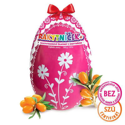 Oblíbené ovocné želatinky plné těch nejdůležitějších vitaminů pro vaše děti ve VELIKONOČNÍ limitované edici. Šťavnaté želatinové bonbony obsahují 20 % ovocné šťávy a každá želatinka v sobě dále ukrývá vitaminy a rakytník, tedy perfektní kombinaci pro posílení dětské imunity. Multivitaminové mlsání si malí objevitelé mohou brát s sebou na kroužky, do školy nebo může sloužit jako pravidelná odměna za zvládnutí dalšího náročného dne. Protože chápeme, jak vysoce citlivý dětský organizmus je, želatinky neobsahují konzervanty, sladidla, ani přidaná barviva.