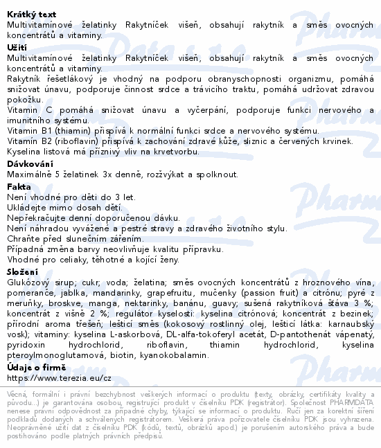 TEREZIA RAKYTNÍČEK multivitaminové želatinky s rakytníkem - VIŠEŇ 70 ks (280 g)