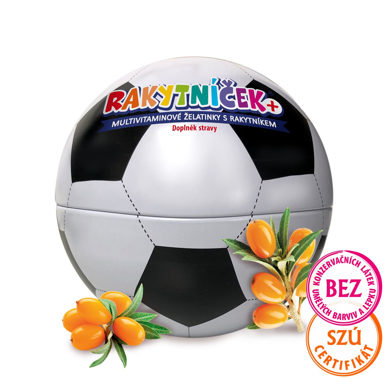 Oblíbené ovocné želatinky plné těch nejdůležitějších vitaminů pro vaše děti v limitované edici pro nadšené fanoušky fotbalu. Šťavnaté želatinové bonbony obsahují 20 % ovocné šťávy a každá želatinka v sobě dále ukrývá 9 aktivních vitaminů a rakytník, tedy perfektní kombinaci pro posílení dětské imunity. Multivitaminové mlsání si malí objevitelé mohou brát s sebou na kroužky, do školy nebo může sloužit jako pravidelná odměna za zvládnutí dalšího náročného dne. Protože chápeme, jak vysoce citlivý dětský organizmus je, želatinky neobsahují konzervanty, sladidla, ani přidaná barviva.