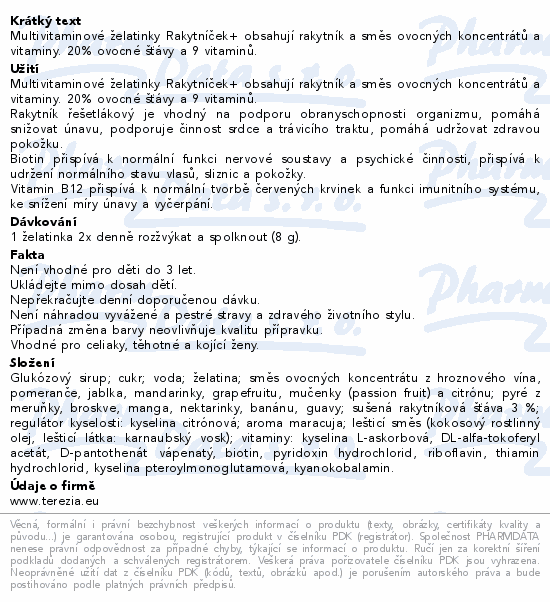 Oblíbené ovocné želatinky plné těch nejdůležitějších vitaminů pro vaše děti ve VÁNOČNÍM kabátu. Šťavnaté želatinové bonbony obsahují 20 % ovocné šťávy a každá želatinka v sobě dále ukrývá 9 aktivních vitaminů a rakytník, tedy perfektní kombinaci pro posílení dětské imunity. Multivitaminové mlsání si malí objevitelé mohou brát s sebou na kroužky, do školy nebo může sloužit jako pravidelná odměna za zvládnutí dalšího náročného dne. Protože chápeme, jak vysoce citlivý dětský organizmus je, želatinky neobsahují konzervanty, sladidla, ani přidaná barviva.