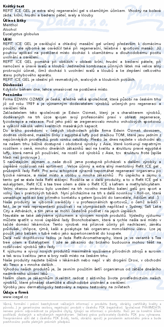 REFIT ICE GEL je extra silný regenerační gel s okamžitým účinkem. Vhodný na bolavá záda, krční, hrudní a bederní páteř, svaly a klouby.