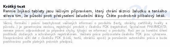 Rennie žvýkací tablety jsou léčivým přípravkem, který chrání sliznici žaludku a tenkého střeva tím, že působí proti překyselení žaludeční šťávy. Čtěte pozorně příbalový leták.