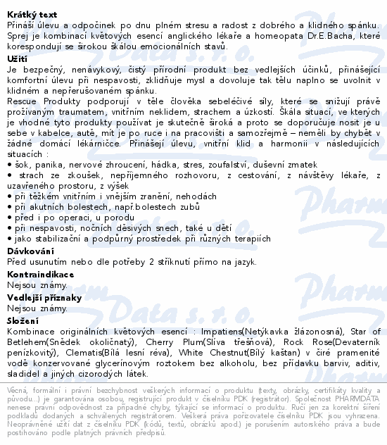 Přináší úlevu a odpočinek po dnu plném stresu a radost z dobrého a klidného spánku. Sprej je kombinací květových esencí anglického lékaře a homeopata Dr.E.Bacha, které korespondují se širokou škálou emocionálních stavů.