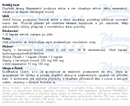 Doplněk stravy Resveratrol podpora srdce a cév obsahuje aktivní látku resveratrol, získanou ze slupek červených hroznů.