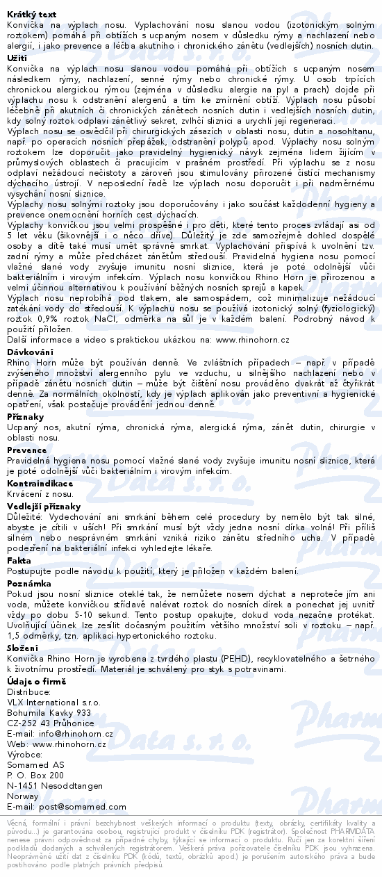Konvička na výplach nosu. Vyplachování nosu slanou vodou (izotonickým solným roztokem) pomáhá při obtížích s ucpaným nosem v důsledku rýmy a nachlazení nebo alergií, i jako prevence a léčba akutního i chronického zánětu (vedlejších) nosních dutin.