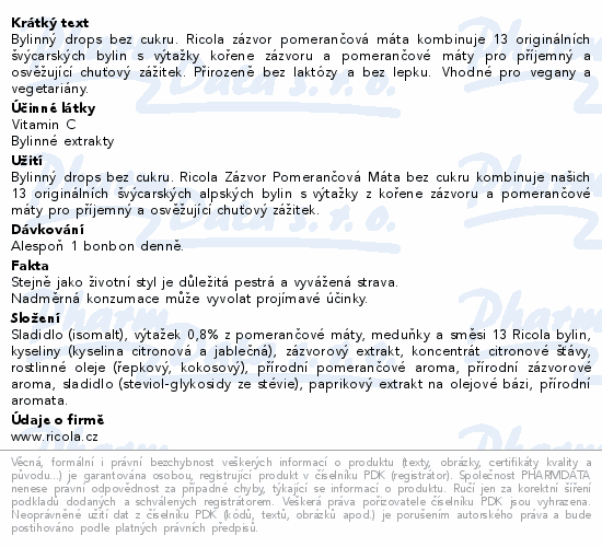 Bylinný drops bez cukru. Ricola zázvor pomerančová máta kombinuje 13 originálních švýcarských bylin s výtažky kořene zázvoru a pomerančové máty pro příjemný a osvěžující chuťový zážitek. Přirozeně bez laktózy a bez lepku. Vhodné pro vegany a vegetariány.