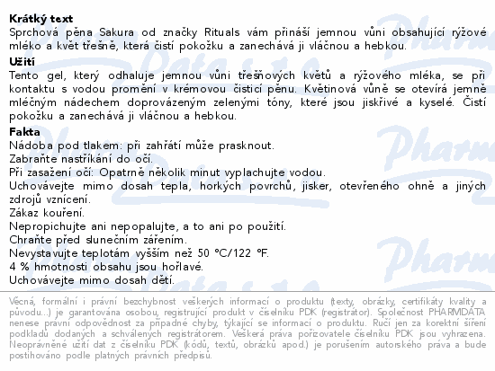Sprchová pěna Sakura od značky Rituals vám přináší jemnou vůni obsahující rýžové mléko a květ třešně, která čistí pokožku a zanechává ji vláčnou a hebkou.