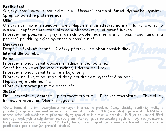 Olejový nosní sprej s éterickými oleji. Usnadní normální funkci dýchacího systému. Sprej, co pořádně protáhne nos.