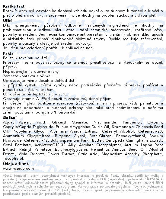 RozeUP krém byl vytvořen ke zlepšení vzhledu pokožky se sklonem k rosacei a k péči o pleť o pleť s chronickým začervenáním. Je vhodný na problematickou a citlivou pleť.