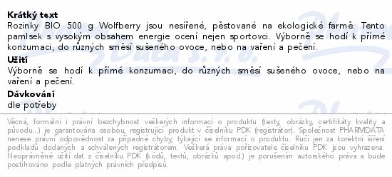 Rozinky BIO 500g Wolfberry