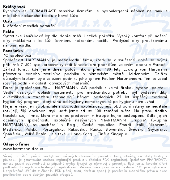 Rychloobvaz DERMAPLAST sensitive 8cmx5m je hypoalergenní náplast na rány z měkkého netkaného textilu v barvě kůže.