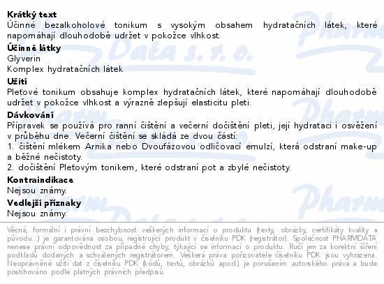 Účinné bezalkoholové tonikum s vysokým obsahem hydratačních látek, které napomáhají dlouhodobě udržet v pokožce vlhkost.