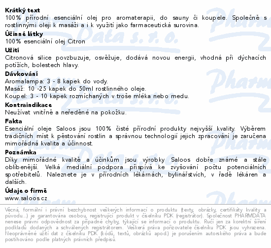 Saloos Esenciální olej Citron 10ml