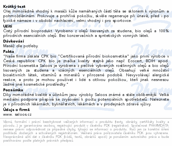 Saloos Tělový a masážní olej Devatero kvítí 50ml