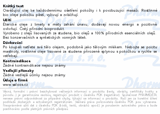 Osvěžující olej ke každodennímu ošetření pokožky i k povzbuzující masáži. Rostlinné bio oleje pokožku pěstí, vyživují a zvláčňují.