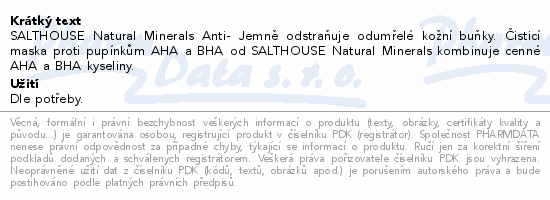 SALTHOUSE Natural Minerals Anti- Jemně odstraňuje odumřelé kožní buňky. Čisticí maska proti pupínkům AHA a BHA od SALTHOUSE Natural Minerals kombinuje cenné AHA a BHA kyseliny.