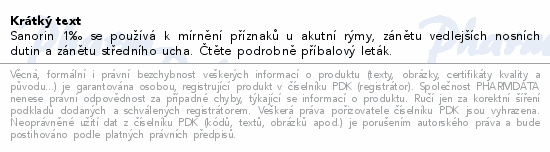 Sanorin 1‰ se používá k mírnění příznaků u akutní rýmy, zánětu vedlejších nosních dutin a zánětu středního ucha. Čtěte pozorně příbalový leták.