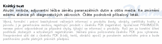 Akutní rinitida, adjuvantní léčba zánětu paranazálních dutin a otitis media. Ke zmírnění edému sliznice při diagnostických zákrocích. Čtěte pozorně příbalový leták.