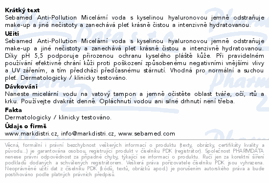 Sebamed Anti-Pollution Micelární voda s kyselinou hyaluronovou jemně odstraňuje make-up a jiné nečistoty a zanechává pleť krásně čistou a intenzivně hydratovanou.
