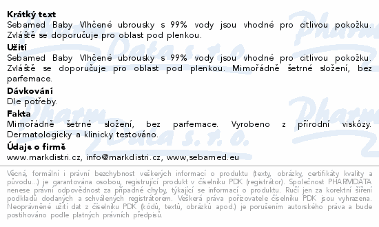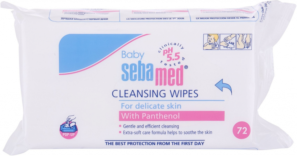 Sebamed Baby Vlhčené ubrousky s 99% vody jsou vhodné pro citlivou pokožku. Zvláště se doporučuje pro oblast pod plenkou.