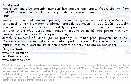 Ideální ochrana před spálením,intenzivní hydratace a regenerace. Vysoce efektivní filtry UVA/UVB v kombinaci s mikro-pimenty předchází poškození kůže.