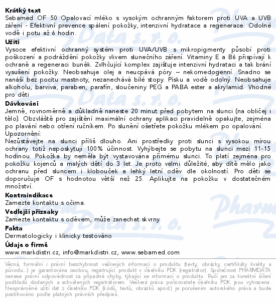 Sebamed OF 50 Opalovací mléko s vysokým ochranným faktorem proti UVA a UVB záření - Efektivní prevence spálení pokožky, intenzivní hydratace a regenerace. Odolné vodě i potu až 6 hodin.