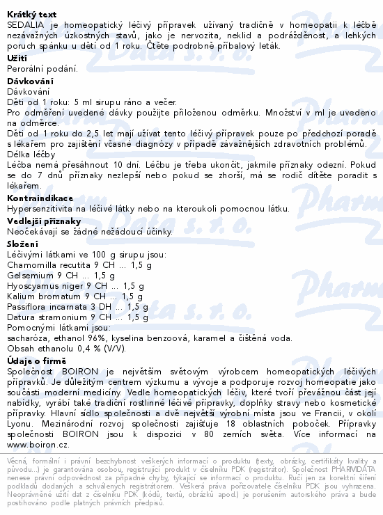 SEDALIA je homeopatický léčivý přípravek užívaný tradičně v homeopatii k léčbě nezávažných úzkostných stavů, jako je nervozita, neklid a podrážděnost, a lehkých poruch spánku u dětí od 1 roku. Čtěte pozorně příbalový leták.
