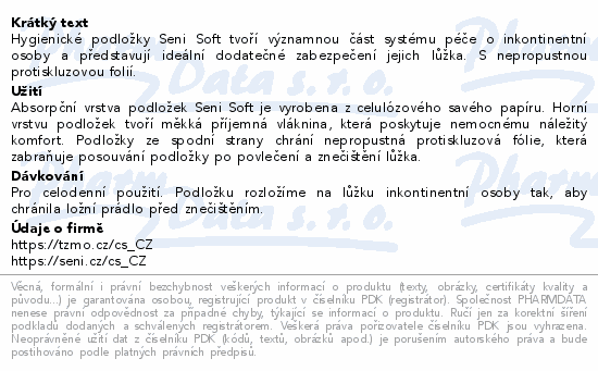 Hygienické podložky Seni Soft tvoří významnou část systému péče o inkontinentní osoby a představují ideální dodatečné zabezpečení jejich lůžka. S nepropustnou protiskluzovou folií.