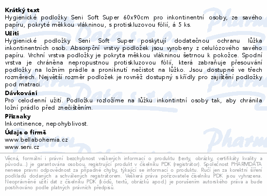 Hygienické podložky Seni Soft Super 60x90cm pro inkontinentní osoby, ze savého papíru, pokryté měkkou vlákninou, s protiskluzovou fólií, á 5 ks.